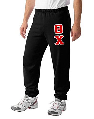 Product DescriptionTheta Chi Lettered Sweatpants. These Theta Chi Lettered Sweatpants have Sewn 4" letters on the left leg. Made more for men, so order accordingly. Sizing Info: Our sweatpants are unisex sizes unless noted.0
