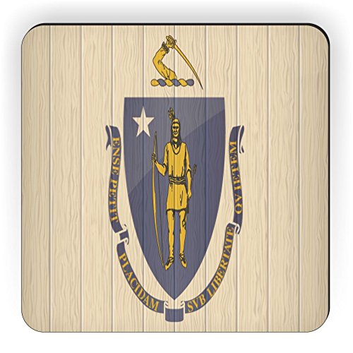 Rikki Knight Massachusetts Flag on Distressed Wood Design Square Fridge Magnet