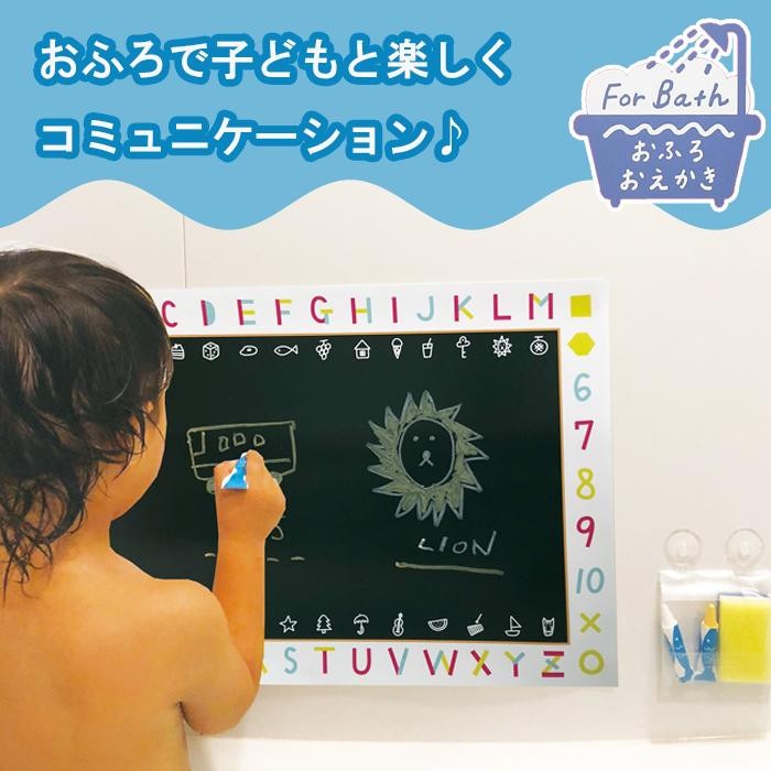 浴室の壁に貼って自由にお絵かき、お勉強ができる「おふろシート」と濡れた面にも使える「おふろ用キットパス」のセットです。スポンジで簡単に落ち、繰り返し書くことができます。 |