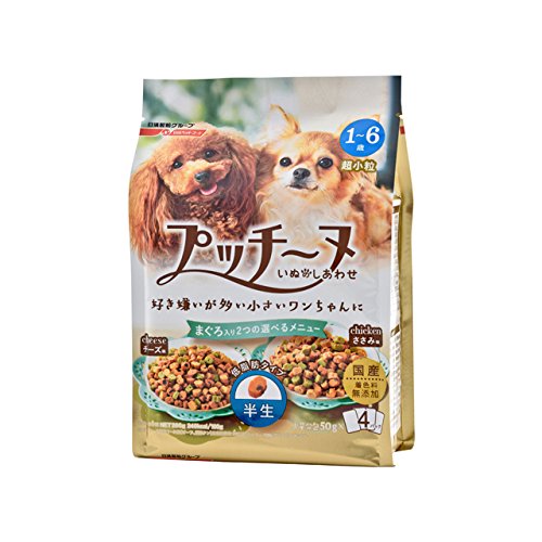 原材料:穀類(小麦粉、小麦グルテン、脱脂米糠)、肉類(鶏肉、鶏ささみ)、脱脂大豆、糖類(砂糖、異性化糖、オリゴ糖)、魚介類(まぐろ、フィッシュエキス、魚肉抽出物)、野菜類(パプリカ、ほうれん草パウダー、にんじん)、油脂類(動物性油脂、植物性油脂、フィッシュオイル、米胚芽油)、ビール酵母、チーズ、コラーゲン、CoQ10、N-アセチルグルコサミン、プロピレングリコール、ミネラル類(カルシウム、リン、亜鉛、銅、ヨウ素)、ビタミン類(A、D、E、B2、B12、パントテン酸、葉酸、コリン)、グリセリン、リン酸塩(Na)、保存料(ソルビン酸カリウム)、酸化防止剤(ビタミンC)