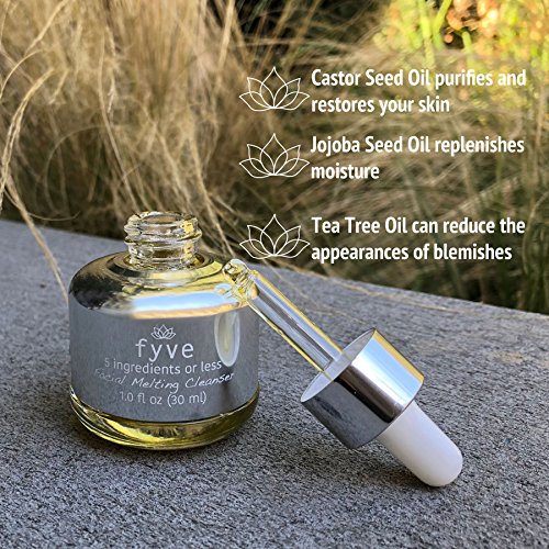 All Natural Face Oil Cleanser and makeup remover, for all skin types, with Castor Oil and Jojoba Oil, 1 oz