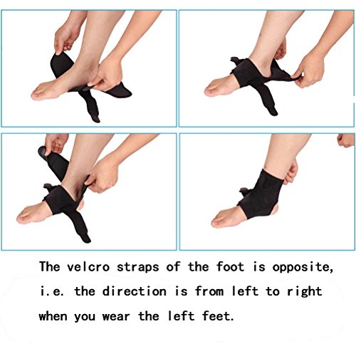 3.HOW TO WEAR: 1.Step on the heel opening.2.Tighten the velcro closure on the ankle support to a comfortable tightness.3.Same as step 2. 4.Crossover and tighted the crisscross straps to the top part of the ankle support to a comfortable tightness.