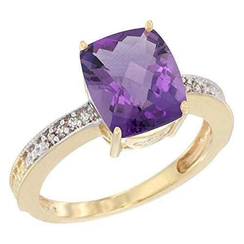-. Title : 10K Yellow Gold Diamond Cushion 10x8 mm Natural Amethyst Stone Ring, sizes 5 - 10