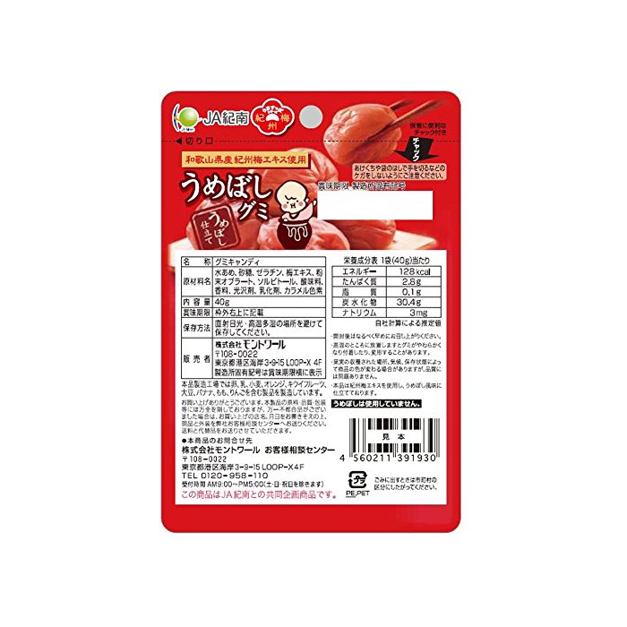 원본상품명: モントワ?ル JA紀南 うめぼしグミ 40g×10袋