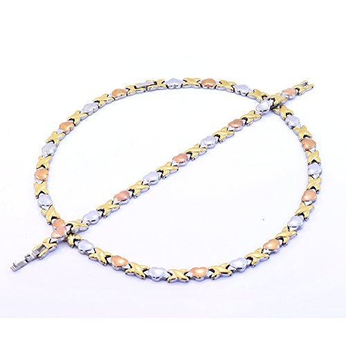 Hypoallergenic, nickel and lead free stainless steel. The necklace is 18 inches and the bracelet is nearly 8" in length. Stampato "hugs and kisses" design. Brand : SPARKLE XOXO Package Dimensions(LxWxH) : 22x15x2cm ; 91 g
