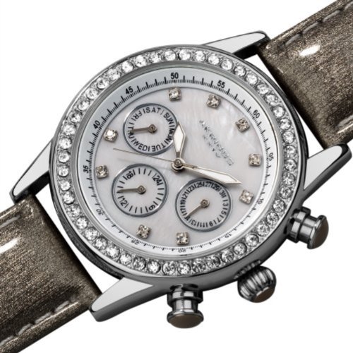 -. Feature : Swiss quartz multifunction movement. Grey, mother of pearl dial / Subdials at 3, 6 and 9 o'clock position / One row of genuine crystals on the bezel / Silver-tone, luminescent hands / Not water resistant