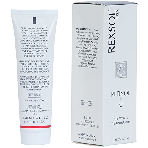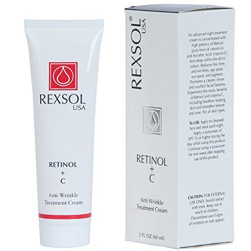 REXSOL Retinol + C Anti-Wrinkle Treatment Cream | Contains pure Vitamin A & Vitamin C | Minimize the visible appearance of lines, wrinkles, age spots,...