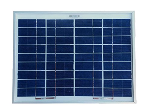 -. Feature : 10 Watt solar panel provides up to 10 watts of clean, free, renewable power / Designed for maintaining (trickle charge) 12 volt batteries in RVs, cabins, boats, battery operated gates, back-up power and any type of remote battery power use / Perfect for 12 volt battery charging (see pictures in photo gallery for solar panel technical specifications and dimensional drawings) / 10W solar panel can provide 35-70 Watt Hours of power per day (depends on sunlight availability) / Grade A solar cells; Heavy duty anodized aluminum frame, 5 year warranty on parts and labor, Delivered ready for connection with solar cable and blocking diode attached.