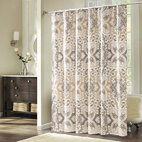Ufavor Modern Roman Paisley Shower Curtain Waterproof and Mildew Resistant Fabric Shower Curtain for Bathroom Decoration, Standard Size 72 By 72-Inch, Multi-colored / Brown / Greenish / Beige