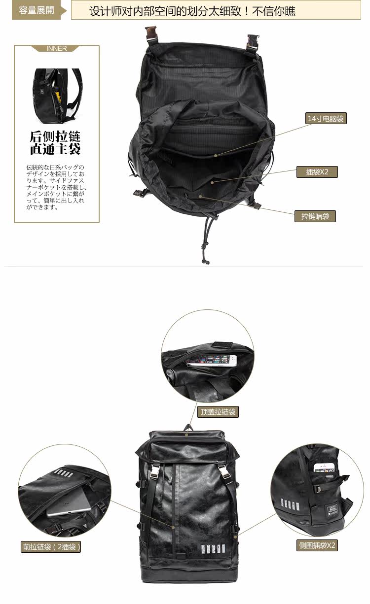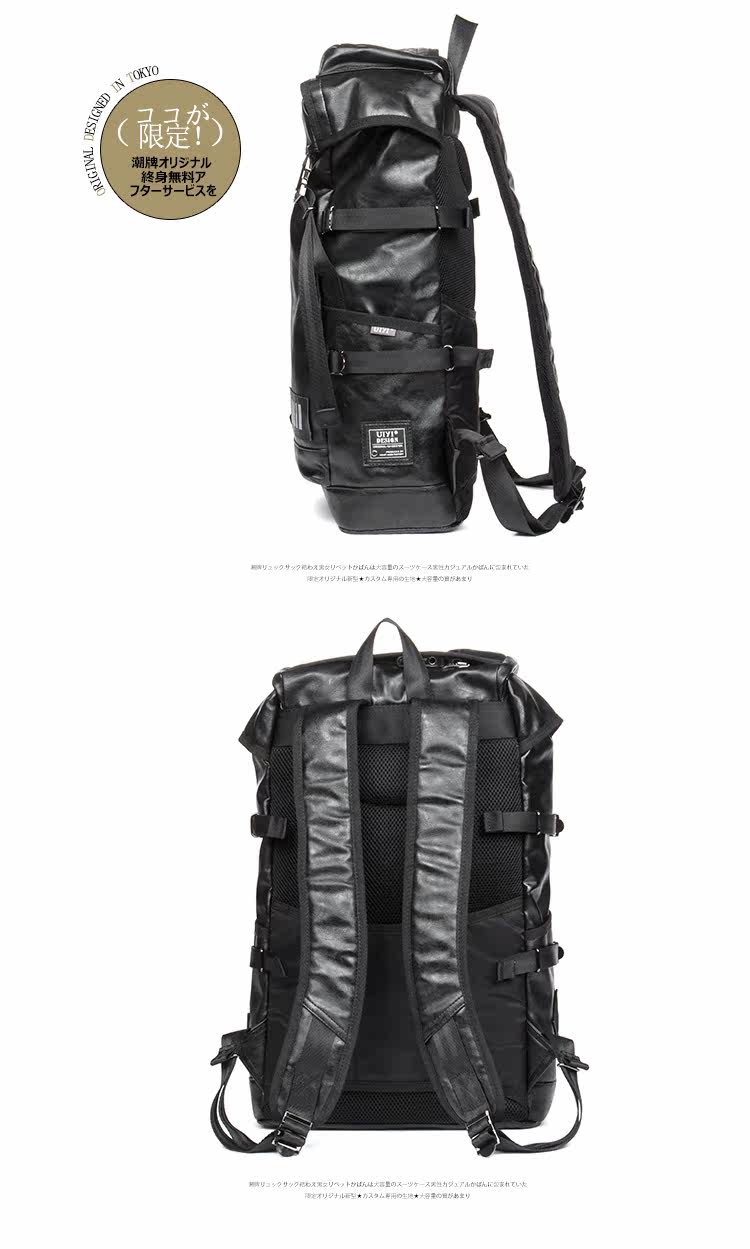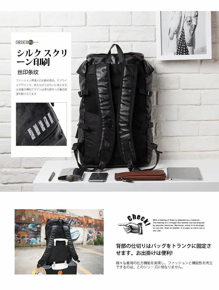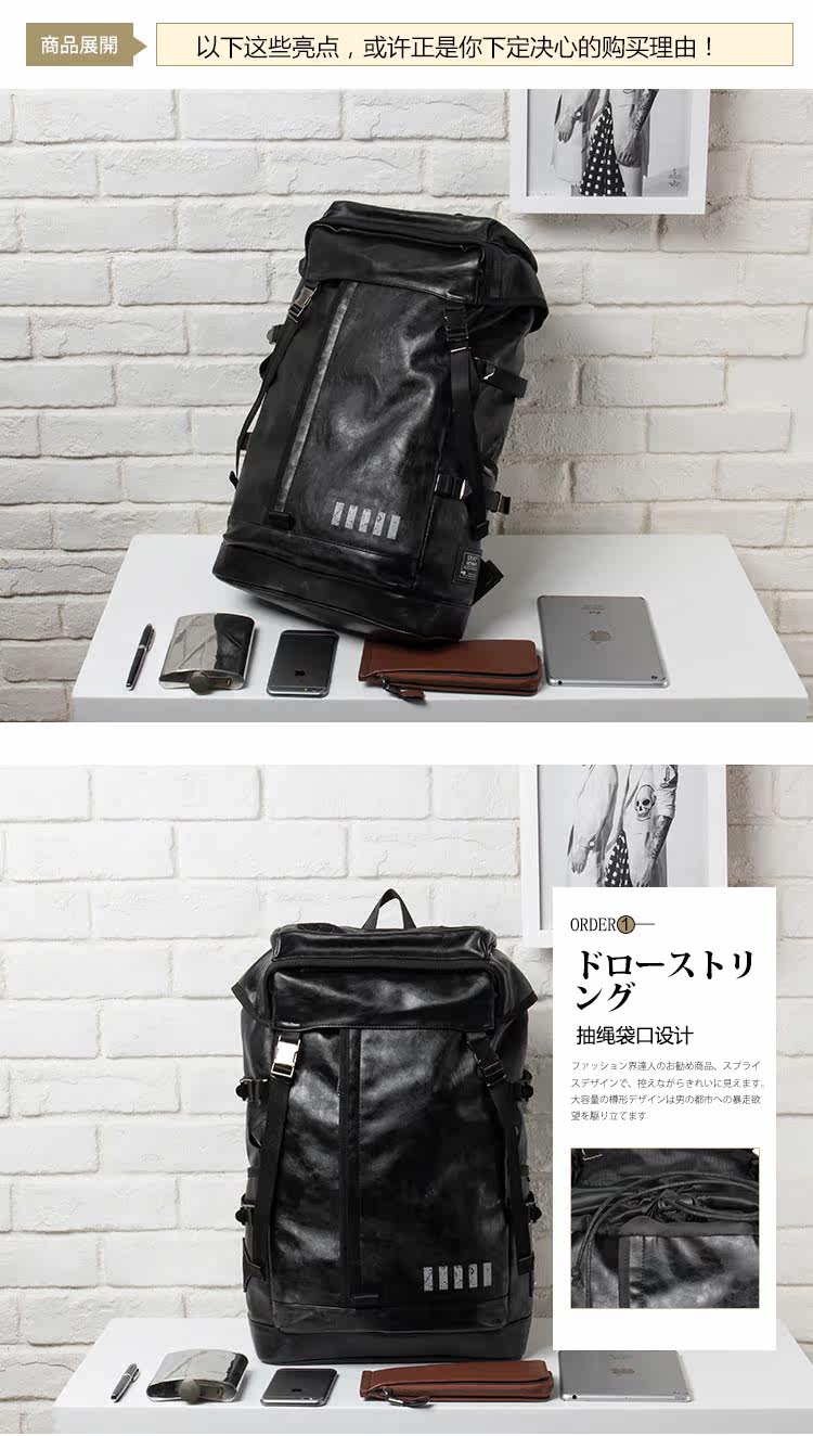 潮牌男包大翻盖抽绳背包双肩包电脑包日韩版男女皮旅行包