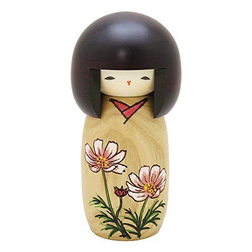 Usaburo Japanese Kokeshi Wooden Doll, Cosmos Brown Kimono