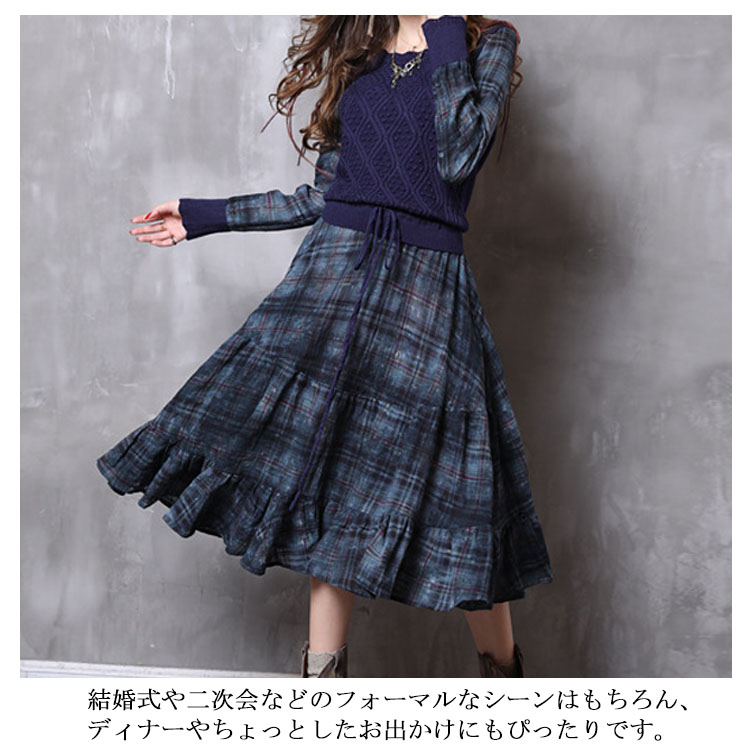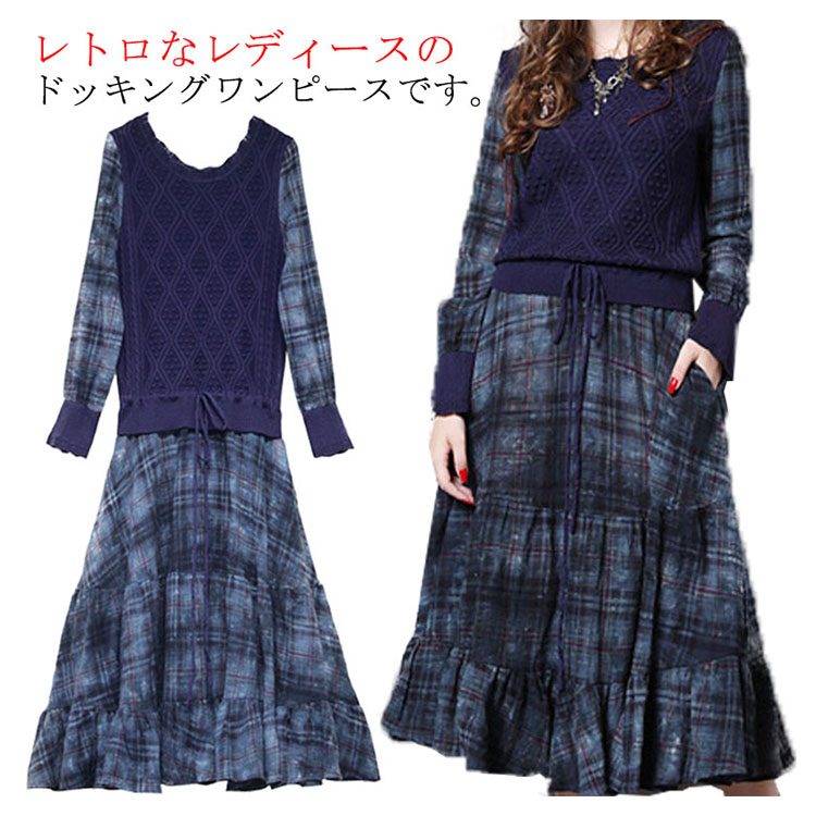 | レトロなレディースのドッキングワンピースです。ニットは肌触りも良く伸縮性のある素材できれいにフィット。ウエストの切り替えですっきりシルエットを演出します。結婚式や二次会などのフォーマルなシーンはもちろん、ディナーやちょっとしたお出かけにもぴったりです。 | |