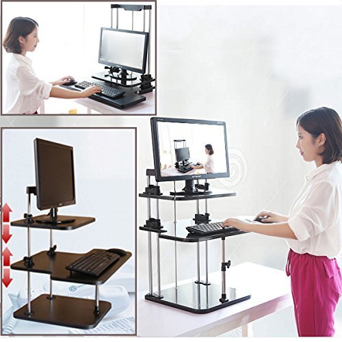 -. Feature : The product has a small footP.R.Int, is lightweight, and is so elegant and refined. / Professional design fits in well with large variety of office décor & fits your laptop or monitor, keyboard & mouse. / Manually adjust the product by simply unlocking the levers, raising it to a standing position, and lock levers in place. / Takes less than 10 minutes to assemble and stable to hold the computer. / A healthy office product.