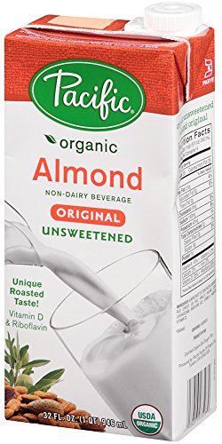 Pacific Foods Organic Almond Non-Dairy Beverage, Unsweetened Original, 32-Ounce, (Pack of 12)