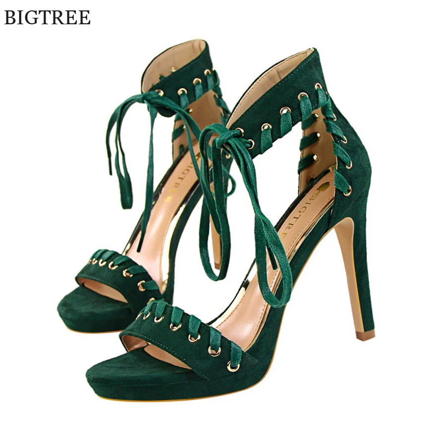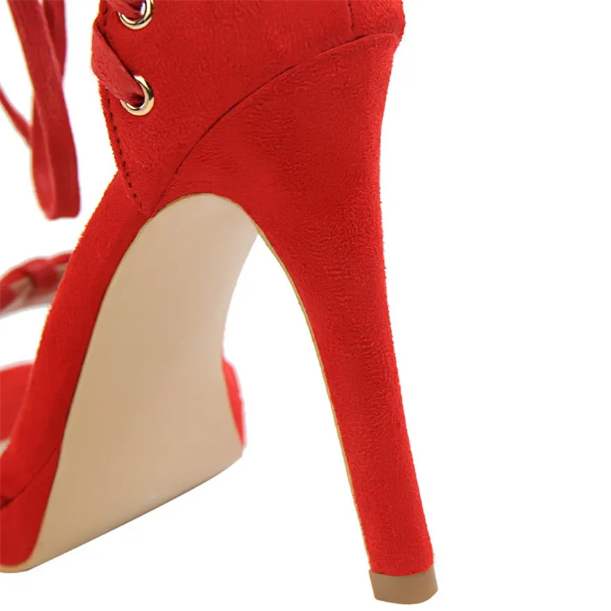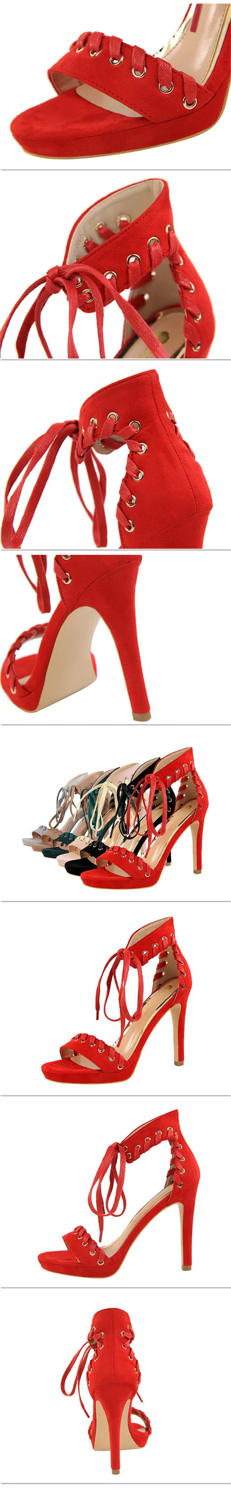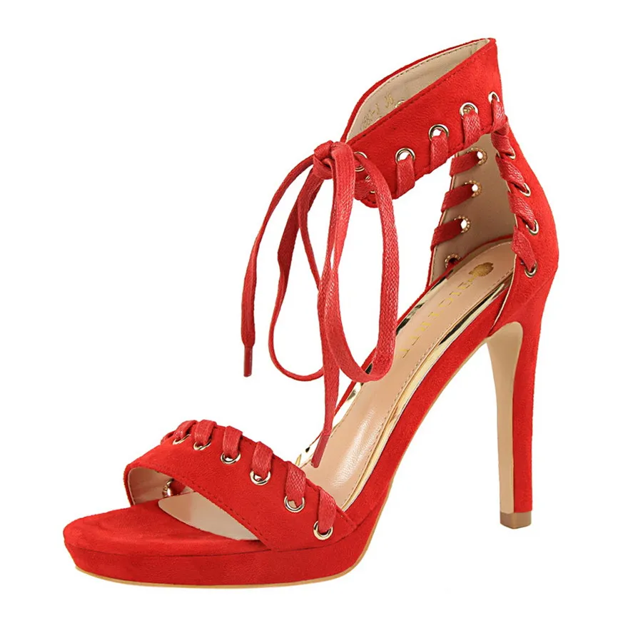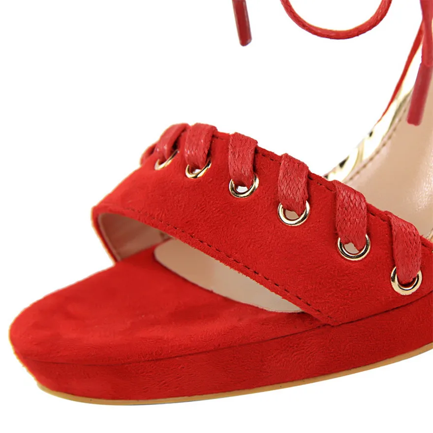 Item:Open Toe Flock Platform Retro Ankle Strap Show Thin Women's Sandals