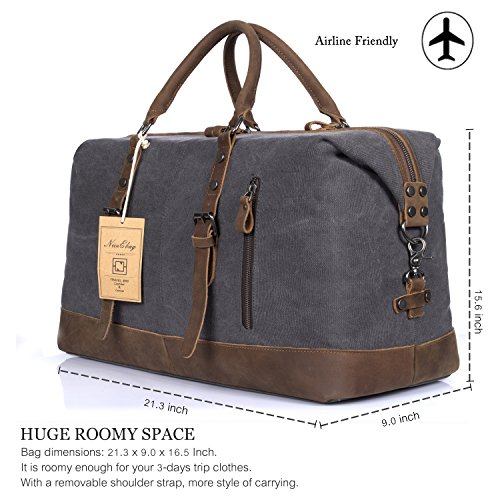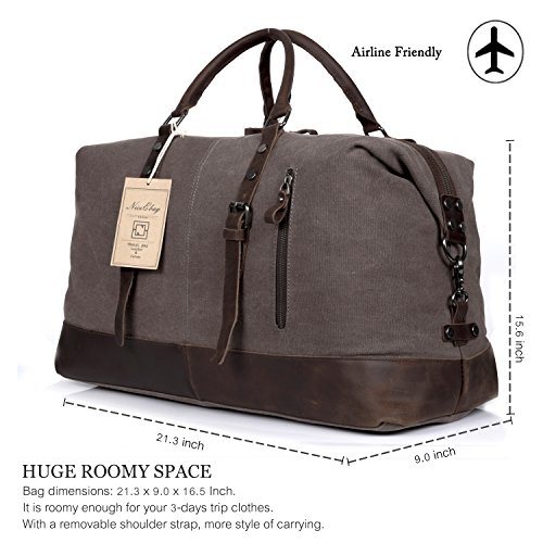 -. Title : NiceEbag Travel Duffel Bag Large Size Briefcase Canvas Leather Lage Tote Duffle Bag Weekender Overnight Bag With Strap For Men Women