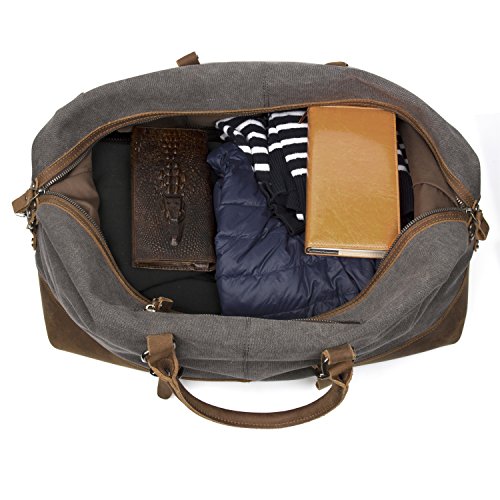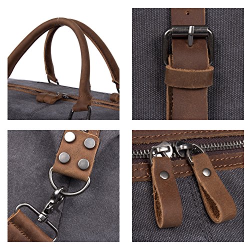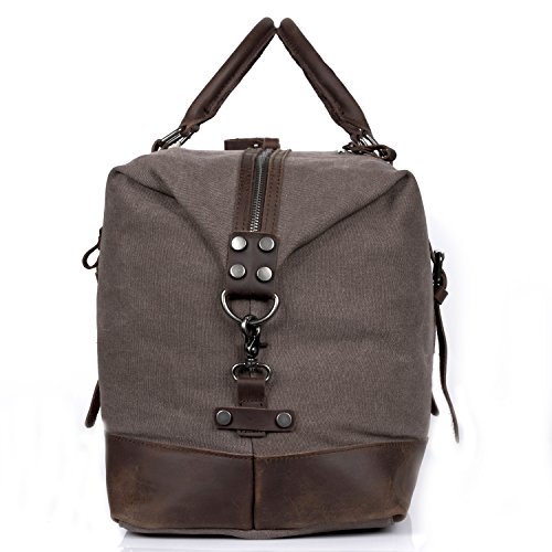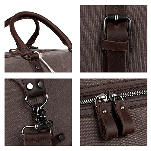 -. Feature : Huge roomy space bag for travel. Bag dimensions:21.3 x 9.0 x 16.5 Inch. Weigt:3.4 lb. / Made of high quality canvas.Durable and High quality. high density Canvas provides the function of water-resistance and scratch-proof. / Genuine Crazy-horse Leather around. Specially design processing makes the leather more exquisite. Never allow high temperature and cutting with knife. Keep the bag dry always. This Crazy-horse leather is easy to be scratched, Use a dry cloth to wipe, the scratch will disappear. / Functional inner pockets.2 inner pockets with zipper for Keeping precious items like purse, keys, money etc;2 phone slots; 1 front pocket with zipper for keeping passport; 1 top pocket with zipper for phone. / Occasions: 3 days trip, travel, weekend activity, shopping, on a plane etc.