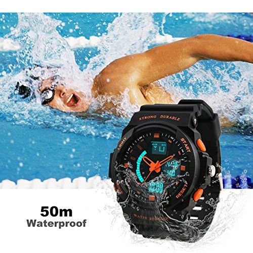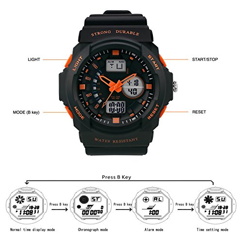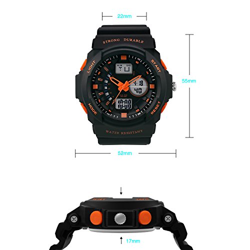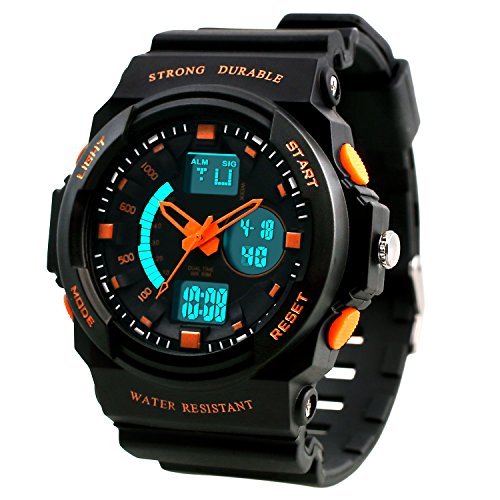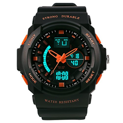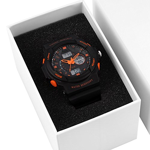 Dictac 손목시계 전자 시계 방수 다기능 스톱워치 자명종 아이 어른 레이디스 맨즈 겸용 (오렌지,어른)