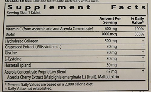 -. Feature : Biotin, a B vitamin which may prevent nail brittleness and promote healthy hair and improve skin condition / Collagen, a major structural protein of connective tissues / Grapeseed Extract, a powerful antioxidant / Glycine, an amino acid that works in conjunction with collagen to promote skin moisturization / L-Cysteine, an amino acid that promotes the formation of keratin, a major protein in hair, skin and nails