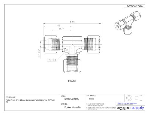 Parker A-Lok 4ET4-B Brass Compression Tube Fitting, Tee, 1/4" Tube OD