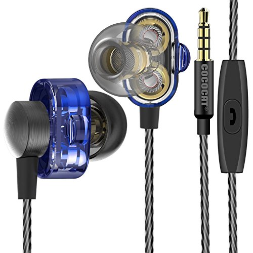 COCOCAT HR-007 Twin Driver High Resolution Heavy Bass In-Ear Headphones with Microphone and Remote for iOS Android -with Premium Foam Earbud Tips for Sport and Isolation Plus Sound