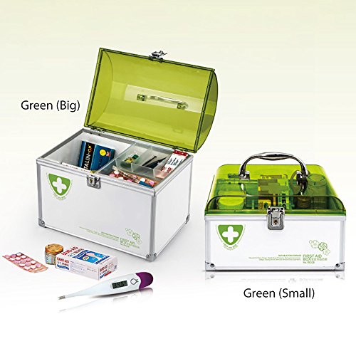 AZDENT Handled Medicine Cabinet Box 10.04''X 9.06''X 6.69'' Locking Medicine Box Prescription Storage (Green(Big))