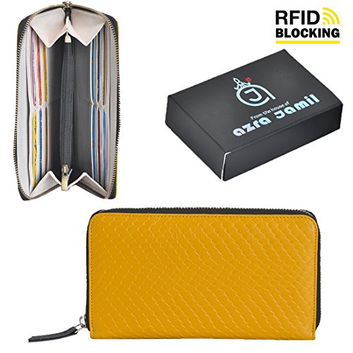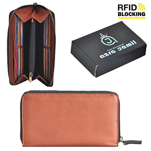 From the house of Azrajamil We bring - Premium Finished Women's Genuine Leather Hand Crafted Clutches. The clutch from AzraJamil is PREMIUM FINISHED SAFIANO GENUINE LEATHER, offering you simple easy style, with design that is earthy yet elegant. Combining beauty and function, we also includes a lined interior, a casual chic design and a secured zipped interior center pocket - keeping this versatile clutch slim and light weight. Whether you're heading to work or going out on the town, this stylish clutch is a great addition to any outfit. When you're ready to hit the road, just take this purse in hand or under your arm to bring style along wherever you go.Feature