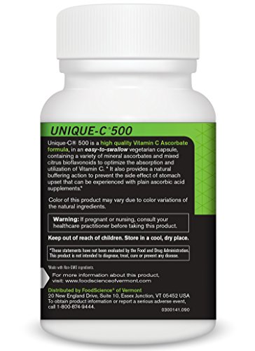Designed to maximize absorption and utilization of this essential vitamin. The vitamin C in FoodScience of Vermont's Unique-C is in the buffered Ascorbate form which helps to prevent stomach irritation that is common when supplementing with plain ascorbic acid found in many over the counter Vitamin C supplements. Our formula also contains minerals and bioflavonoids that help increase the effectiveness of Vitamin C by 50%.*