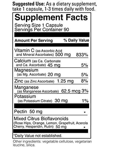 500 mg of Vitamin C in the Ascorbate form to support healthy collagen, red blood cells, and immune system