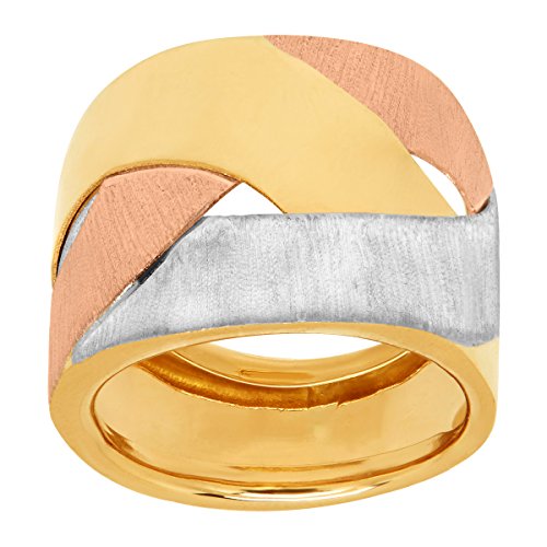 -. Binding : Jewelry -. Brand : Just Gold -. Department : womens -. Feature : Triple Band Illusion / Textured Bands / 14K Yellow & Rose Gold with Rhodium Plate / Face Measures 11/16 Inches in Width / Made in Italy -. Label : Richline Group -. Manufacturer : Richline Group -. Model : 1RG-8408-3C-P -. MPN : 1RG-8408-3C-P -. PackageQuantity : 1 -. PartNumber : 1RG-8408-3C-P -. ProductGroup : Jewelry -. ProductTypeName : FINERING -. Publisher : Richline Group -. Studio : Richline Group -. Title : Just Gold Three-Tone Woven Dome Ring in 14K Yellow & Rose Gold with Rhodium Plate