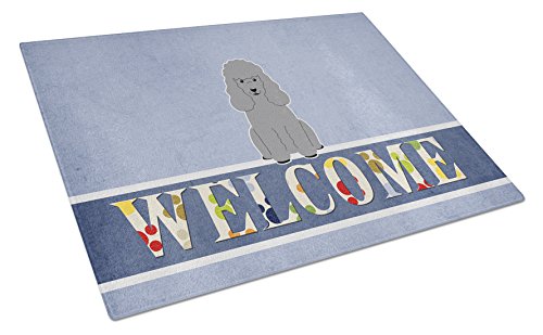 Caroline's Treasures Poodle Silver Welcome Glass Cutting Board Large, Multicolor