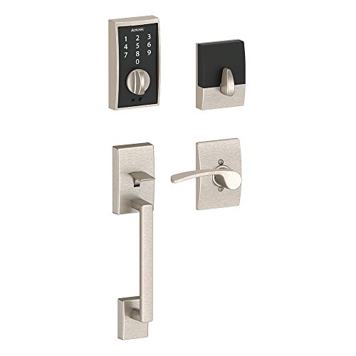 -. Feature : Schlage FE375-CEN-619-MER Satin Nickel Century Keyless Touch Pad Electronic Handleset with Merano Lever