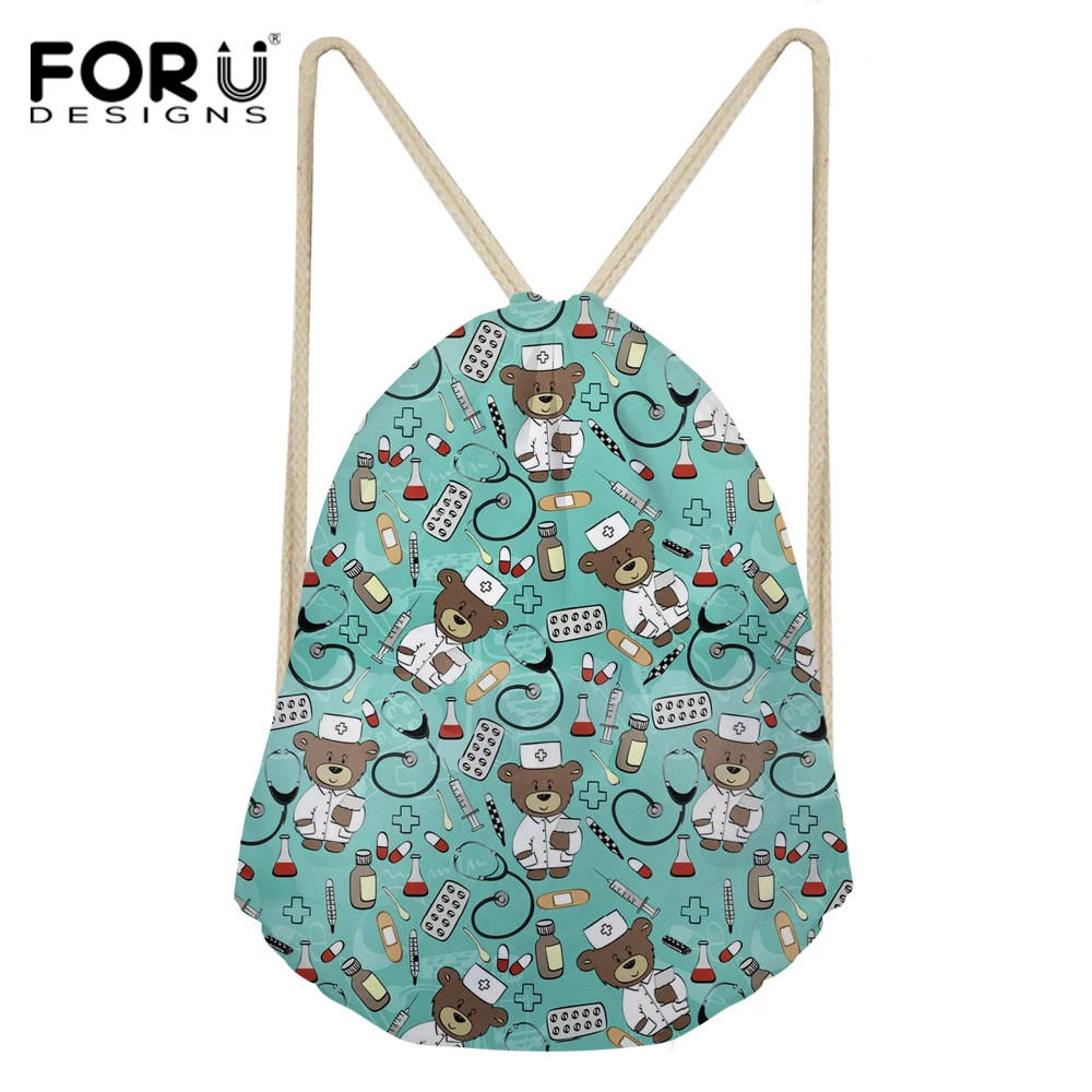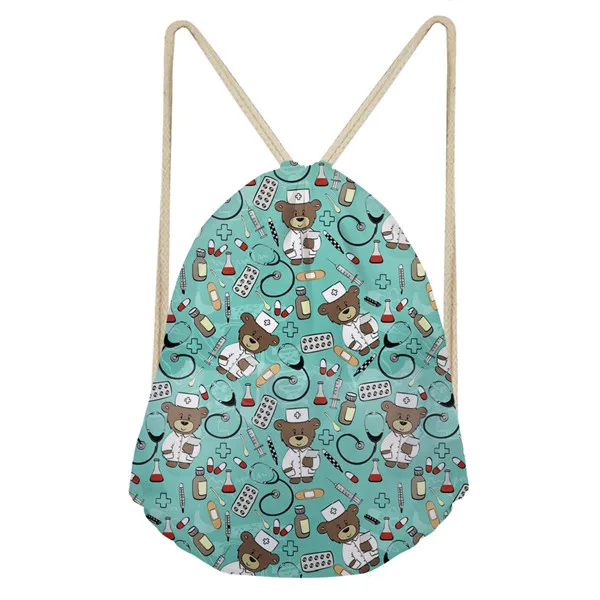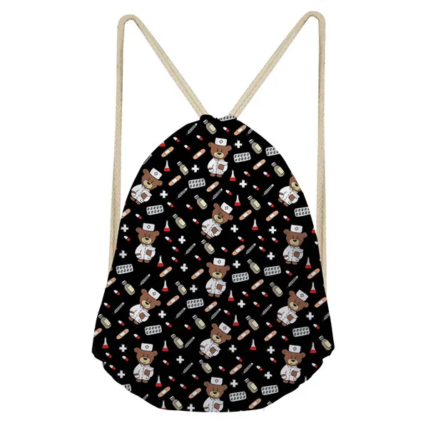 item pattern:cute nurse bear prints drawstring bag