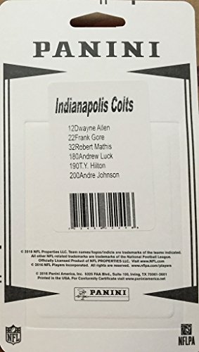 Indianapolis Colts 2016 Panini NFL Football factory sealed 6 card team set including Andrew Luck, Dwayne Allen, Frank Gore, Robert Mathis, T.Y. Hilton and Andre Johnson.