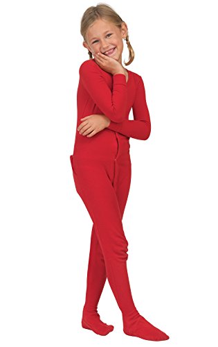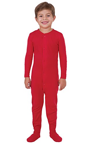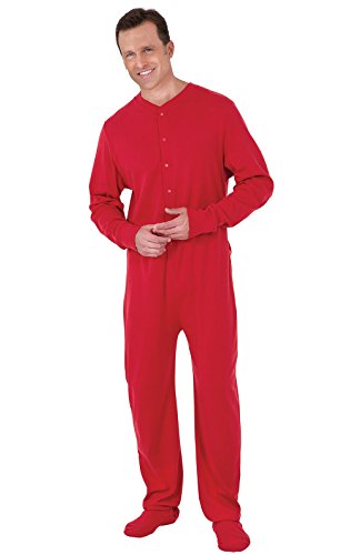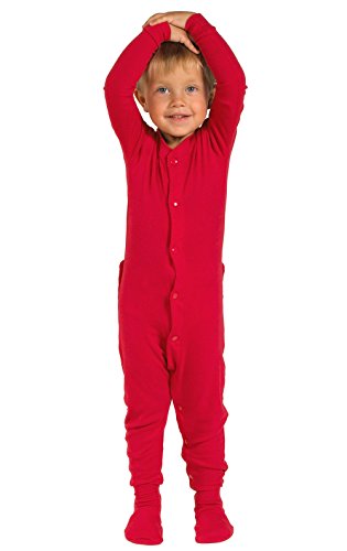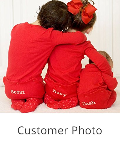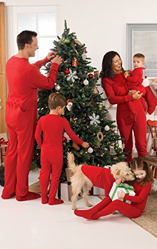 Trim the tree, open presents and sing carols with glee in the PajamaGram Red Dropseat Matching Family Pajamas. These PJs are designed to emulate storybook sleepwear with a full-body fit featuring dropseat bottoms. PajamaGram makes a pair of dropseat onesie pajamas for every single family member, with sizes ranging from infant to adult. Whether you're staging a cute-as-can-be family Christmas photo shoot or are looking for a fun way to keep the tradition of holiday pajamas alive, our Red Dropseat jammies are the perfect choice! They're made from warm and long-lasting 100 percent rib-knit cotton and have ribbed trim and star-shaped treads on the footies. For child's safety, children's sleepwear should be snug-fitting or flame resistant. This garment is snug-fitting. Please order size accordingly. - Made from 100 percent rib-knit cotton