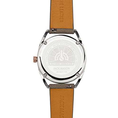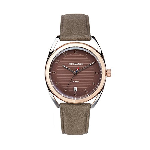 Jack Mason Deck Two Tone Bezel, 3Hand, Date, Mauve Dial w/Grey Leather Strap
