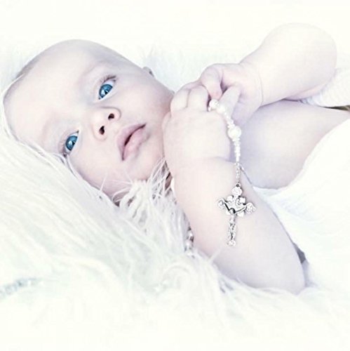 -. Feature : TOP QUALITY - All Components and findings are Silver, Rosaries are hand crafted by a Brooklyn Mom. Rosary is around 25 inches long, so it will fit over the head. Made of Swarovski simulated pearls, silver plated acrylic letters and Italian Silver Cross, manufactured in the USA. / FUNCTIONAL - Rosary can fit from a newborn til the adults. It will fit easy over the child's head. / SAFETY AND SERVICE - Product complies with CPSIA/CPSC requirements, and meets the safety standards for children's products. Components are free of BPA, PVC, phthalates and lead. / CARE AND GIFT - Our Rosaries are Easy to clean: simply use wipes or a damp cloth. They are securely packaged in Organza Rosary Pouch and they are ready to be presented as a baby gift. / MODERN DESIGN - stylish unisex patterns, Modern and neutral colors for both boys and girls. Inspired by European design to be on the forefront on fashion and style.