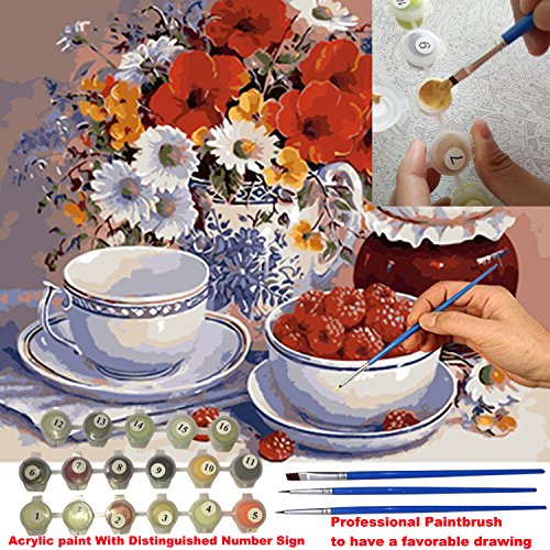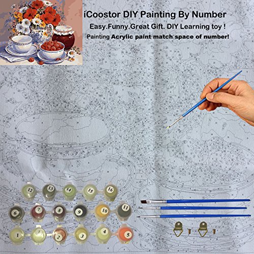 iCoostor DIY Painting Paint By Number for Adults With Brush, Paint by Numbers Kit for Adults Beginner, Beautiful Flower Pattern 16x20inch…