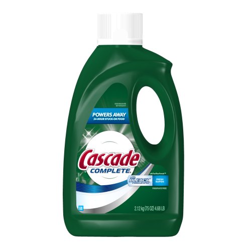 CASCADE COMPLETE ALL-IN-1 GEL DISHWASHER DETERGENT WITH BLEACH HYDROCLEAN ACTION, FRESH RAPIDS SCENT, 75 OUNCE BOTTLES (PACK OF 6)