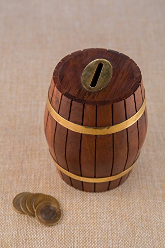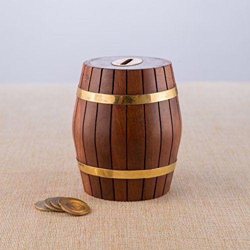 Rusticity Wood Coin Bank / Piggy Bank for Kids and Adults - Barrel Design | Handmade | (4x4 in)