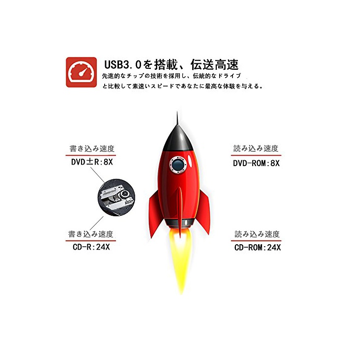 【고속의 기입 짓음】USB 3.0에 데이터의 전송 속도가 최대5Gbps이웃USB2.0(최대480Mbps의 10배이상에 달하는 가능).음악,영화를 재생 성과,완벽하게 CD,DVD,SVCD,CD-R,CD-RW,DVD-R,DVD-RW를 지을 수 있고, CD-RW,CD+RW,DVD-RW,DVD+RW에 써 넣을 수 있습니다.