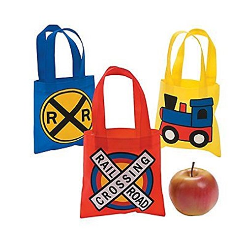 -. Title : Train Party Mini Tote Bags - 12 ct