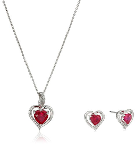 -. Title : Sterling Silver Swarovski Zirconia with Red Zirconia Heart Box Jewelry Set