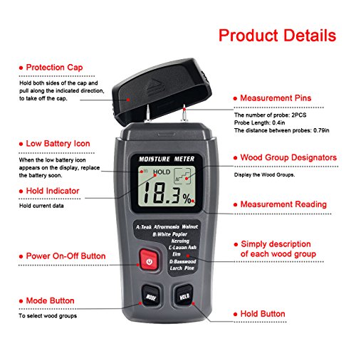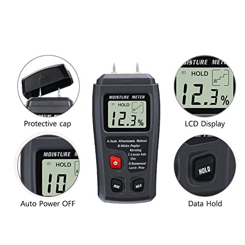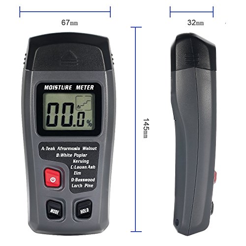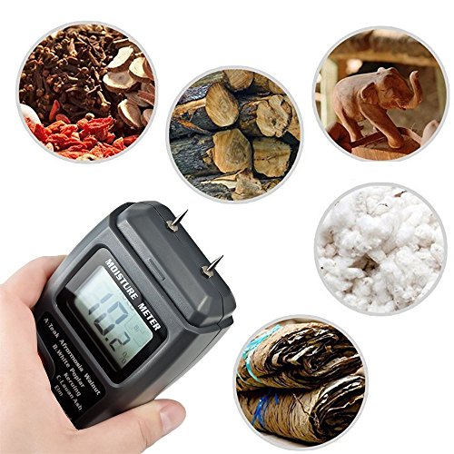 - ★ Easy to read: Moisture meter features an easy-to-read LCD display for quick and easy viewing; ergonomic size fits in one hand. Measurement range: 0 - 99.9%, Resolution: 0.1% and Accuracy: +/- 0.5%