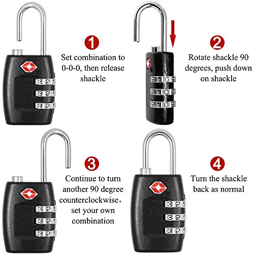 EASY TO USE:A good travel accessories, Resettable 3-dial combination makes it available to go keys-free.TSA Approved is better for Luggage Locks .