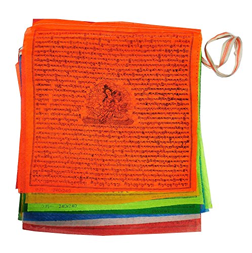 Tibetan Lg Neon 10X10" Wind Horse Lungta Prayer Flags, 21 Flags SET, 18 FT (Green Tara)