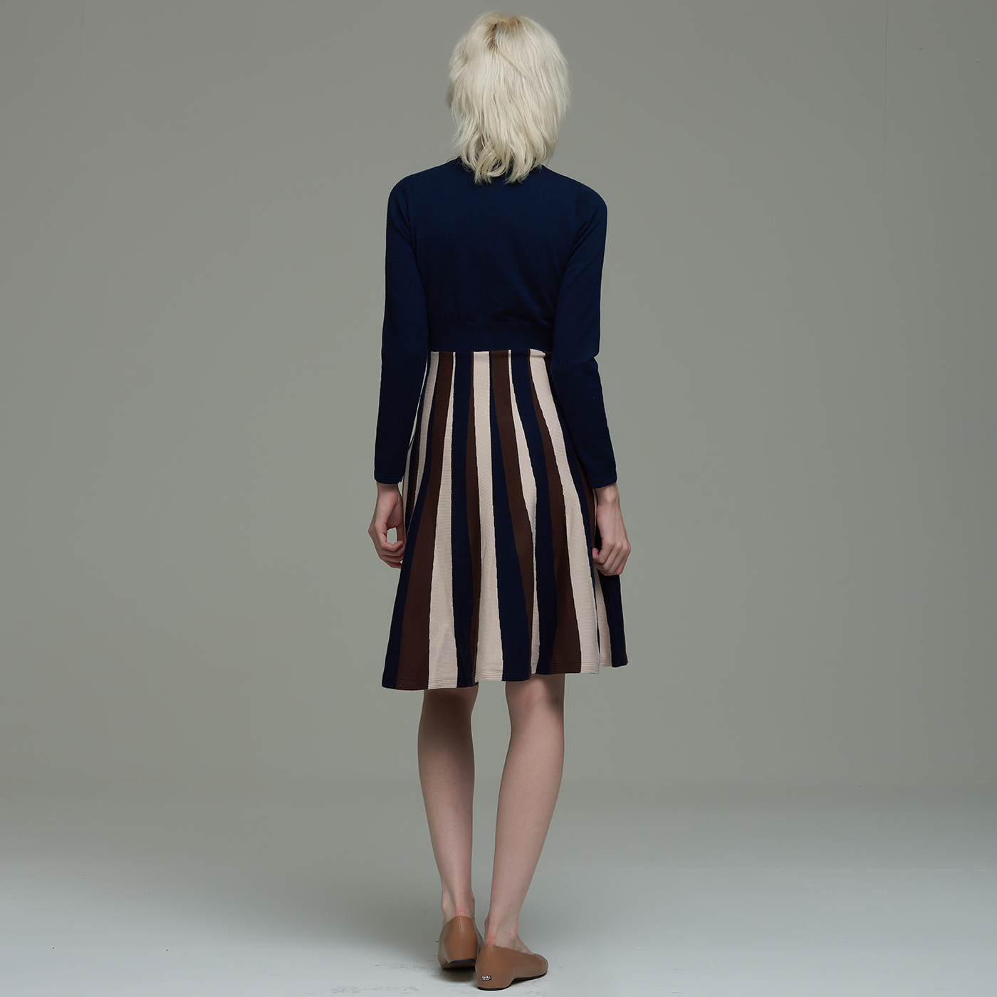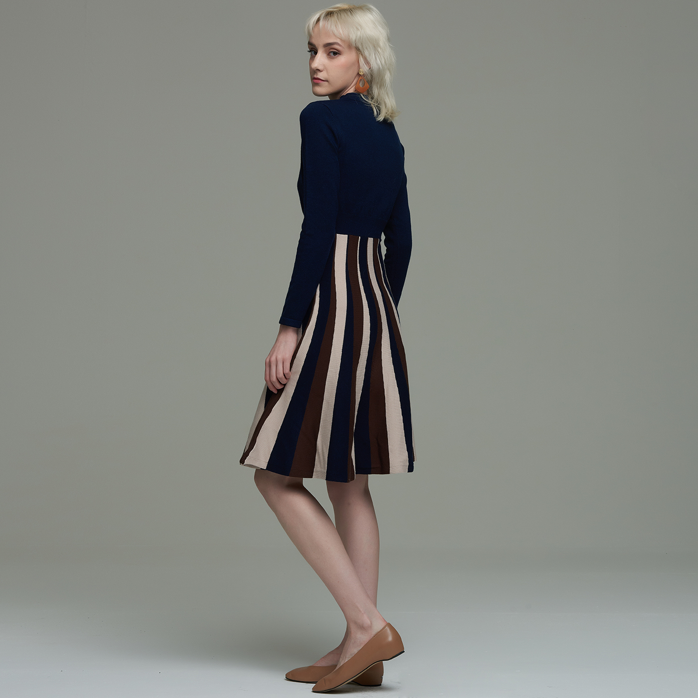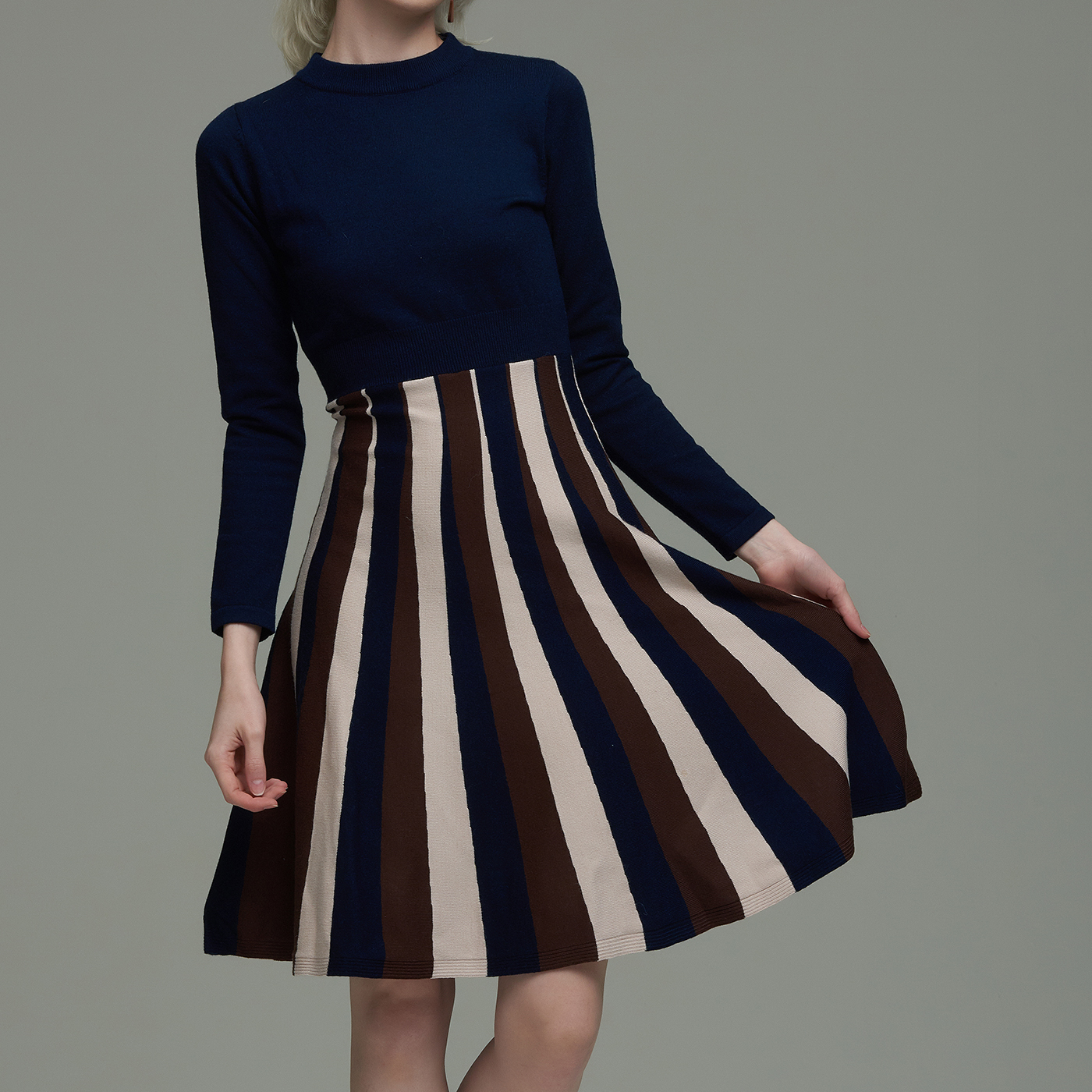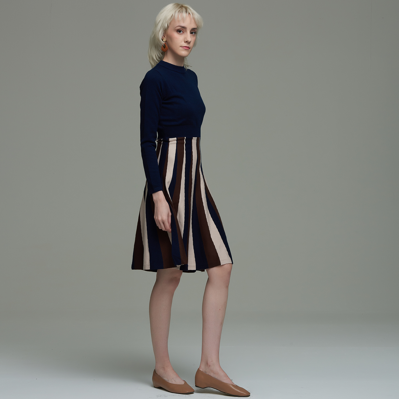 A라인의 하이넥 니트 원피스로 고급스런 스트라이프와 컬러감이 좋은