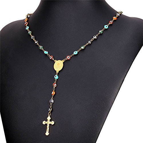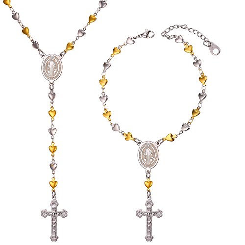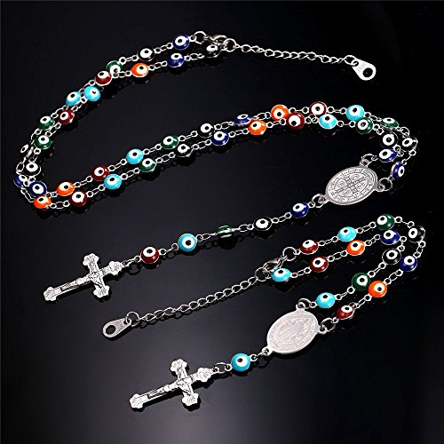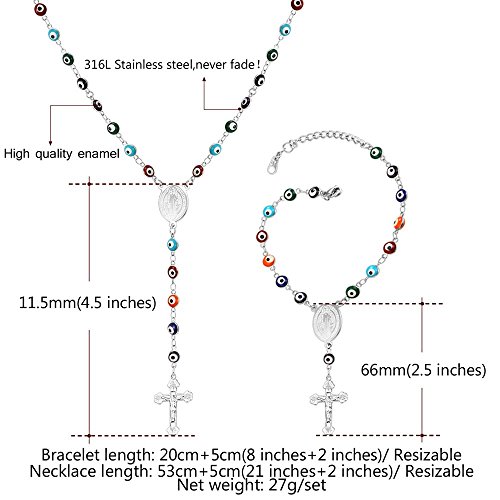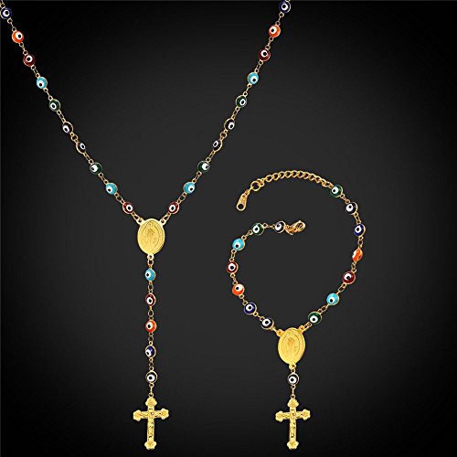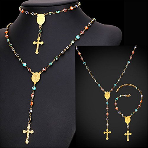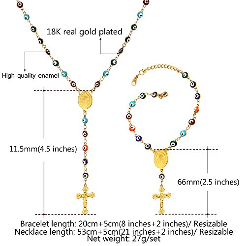 -. Title : U7 Stainless Steel/18K Gold Plated St Benedict and Crucifix Charm Evil Eye Bracelet Rosary Necklace Set