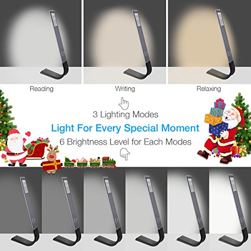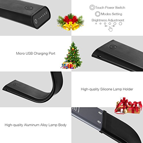 TOUCH CONTROL & DIMMABLE LAMP:Easy to turn on or change the brightness and modes only by touch or slide. Dimmable brightness offers soft, stable and non-flickering light to take care of our eyesight.