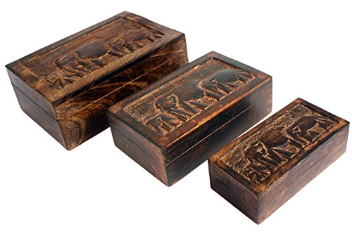 -. Title : Rakhi Gift for Sister Majestic Wooden Jewellery Keepsake Storage Box Organiser Hand Carved Chest with Elephant Brass Inlay by Kamla Sellers